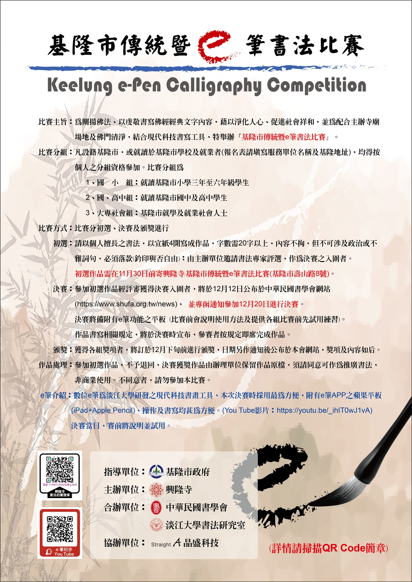- 依據基隆市傳統暨 e 筆書法比賽簡章辦理。